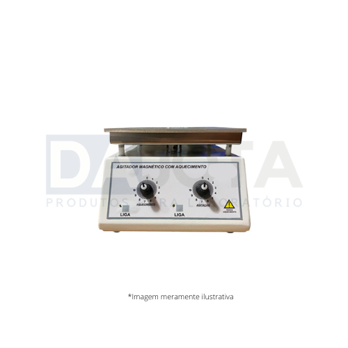 O gabinete é fabricado em aço SAE 1020, submetido a um tratamento anticorrosivo e revestido com pintura eletrostática em epóxi. Possui pés de borracha antivibratórios para maior estabilidade durante o funcionamento. A velocidade de agitação é controlada por potência, permitindo uma rotação máxima no eixo livre de 3000 rpm. O sistema imantado é fixado no motor para garantir um desempenho eficiente. A plataforma é feita de alumínio escovado e possui dimensões de 170x170 mm. O aquecimento é realizado por meio de resistência elétrica, com controle eletrônico de temperatura que permite ajuste de até 300ºC na plataforma, operando com uma potência total de 350 watts. O cabo de alimentação possui 3 pinos (2P+T) em conformidade com a norma NBR 14136 e conta com um fusível de segurança para proteção adicional. O equipamento acompanha uma barra magnética de 7x30 mm para facilitar o processo de agitação. Oferecemos o equipamento em duas opções de voltagem: 127V ou 220V, a ser definida no momento da aquisição.